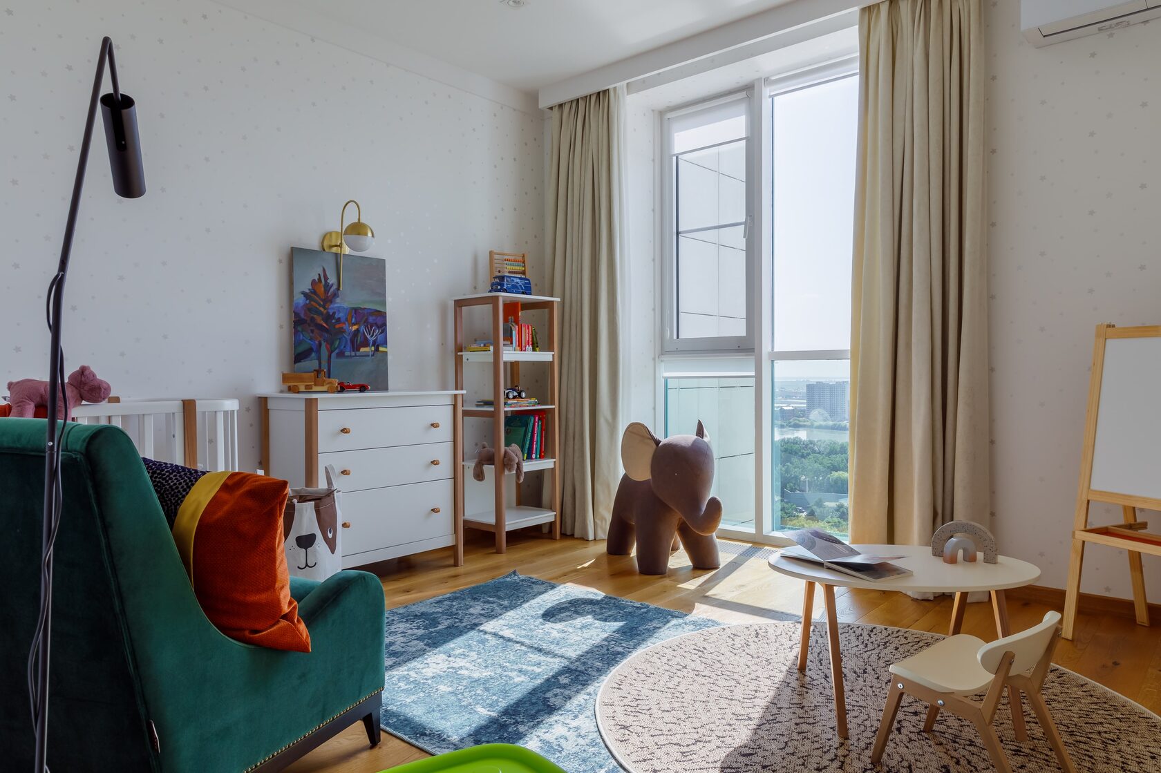 Я предложила Заказчикам несколько вариантов моря. Гостиная – помещение активного времяпрепровождения – цветовая гамма жаркого курорта в солнечный день.