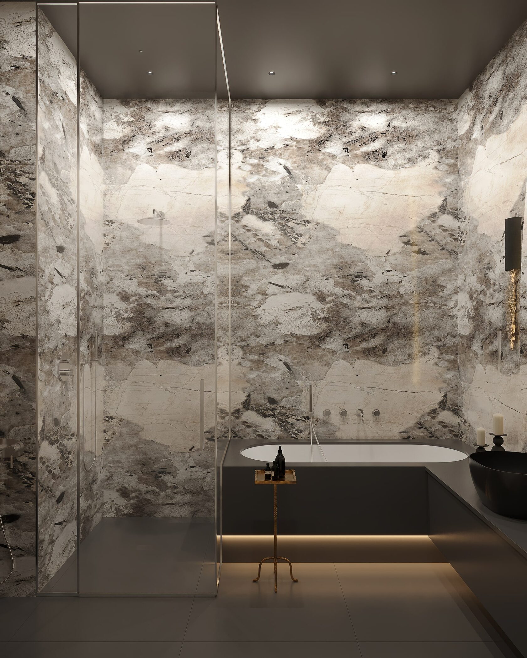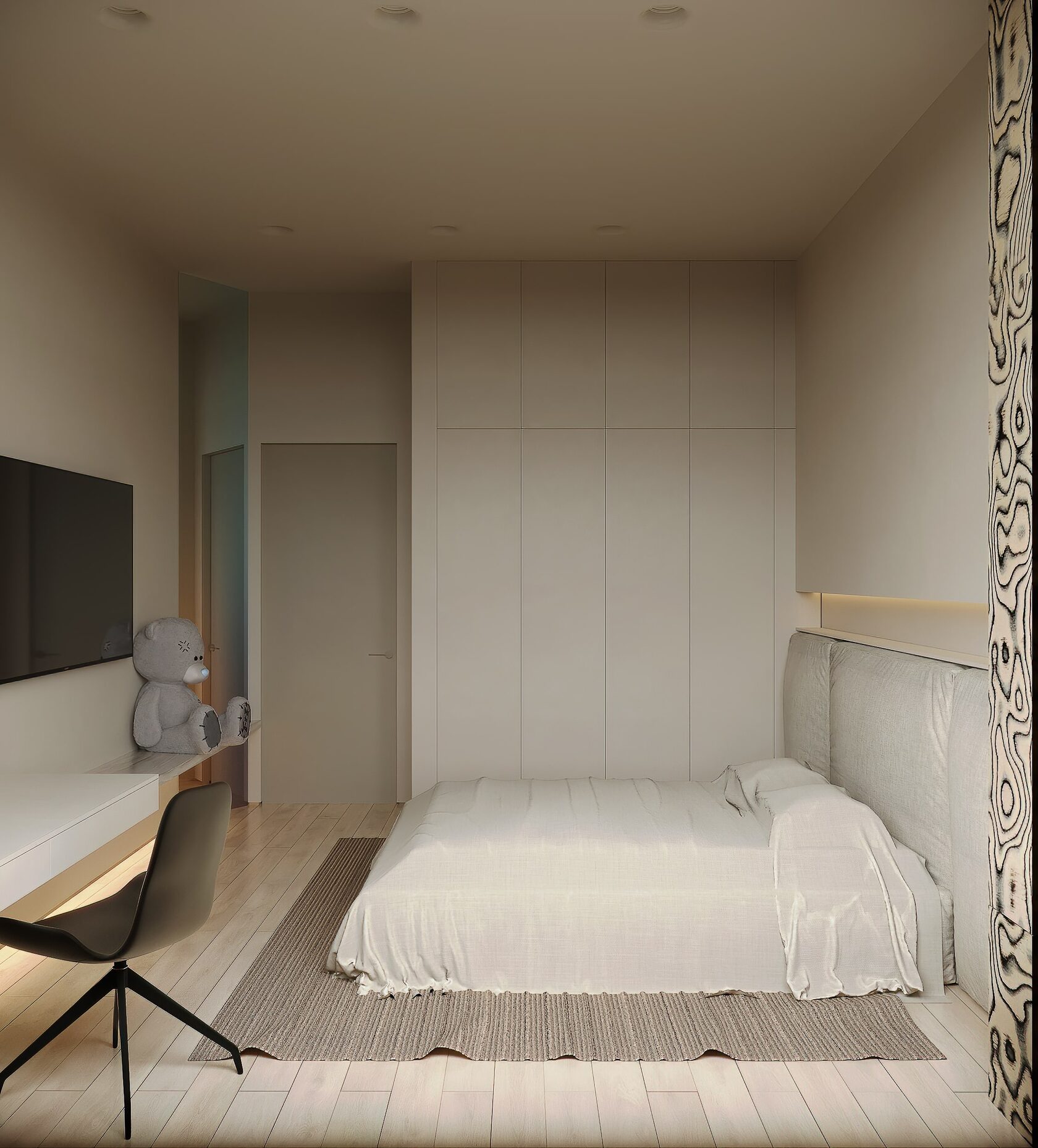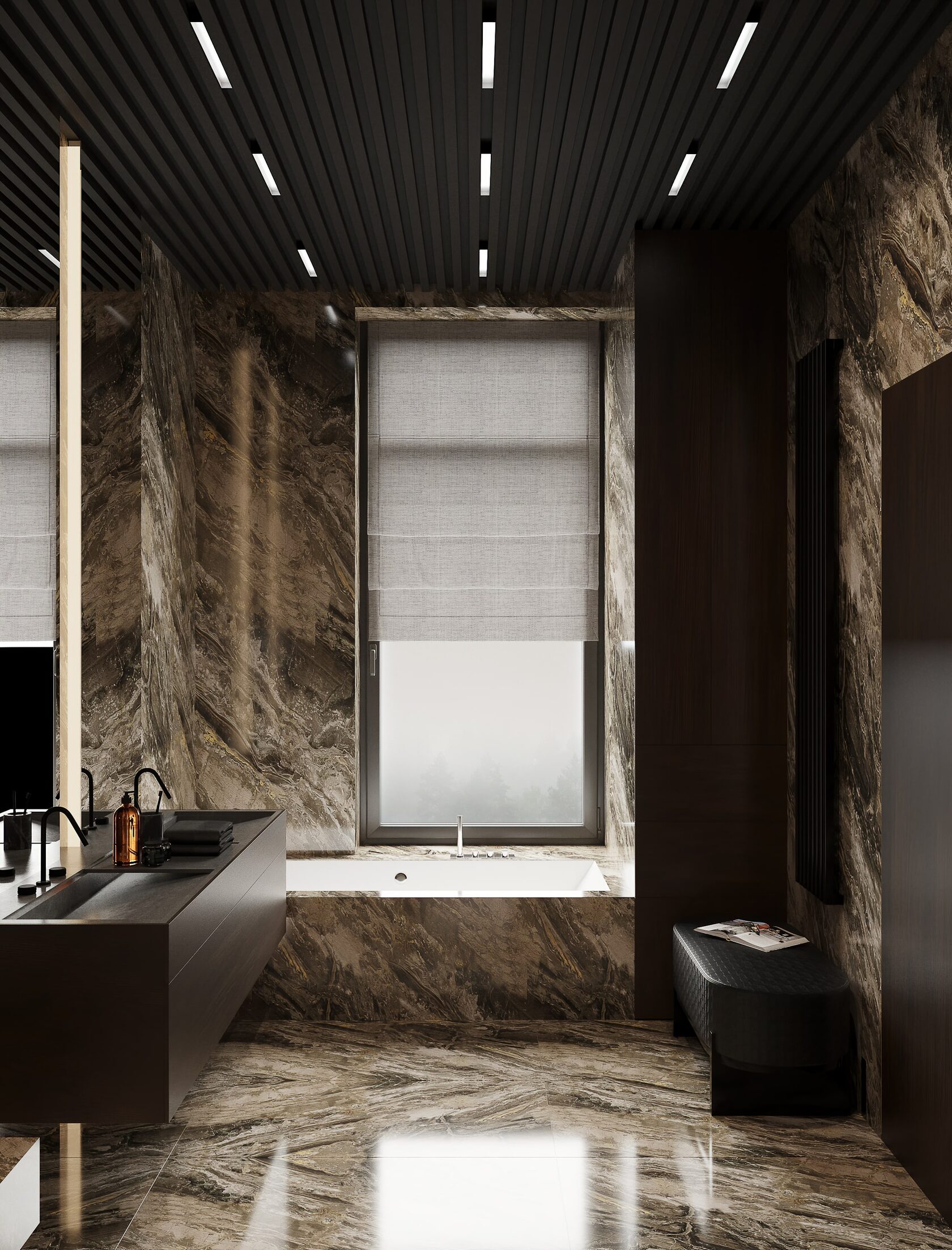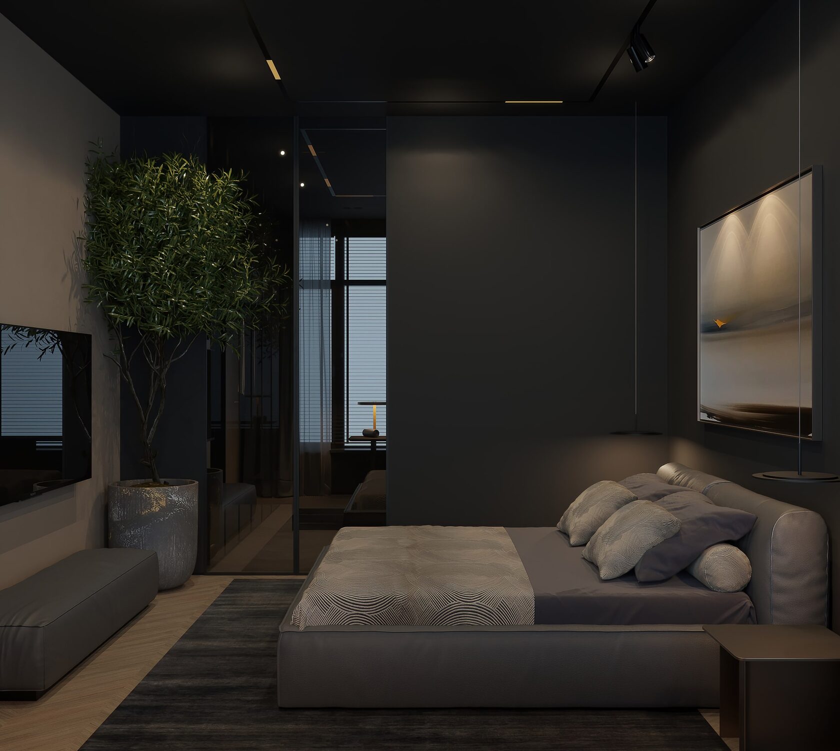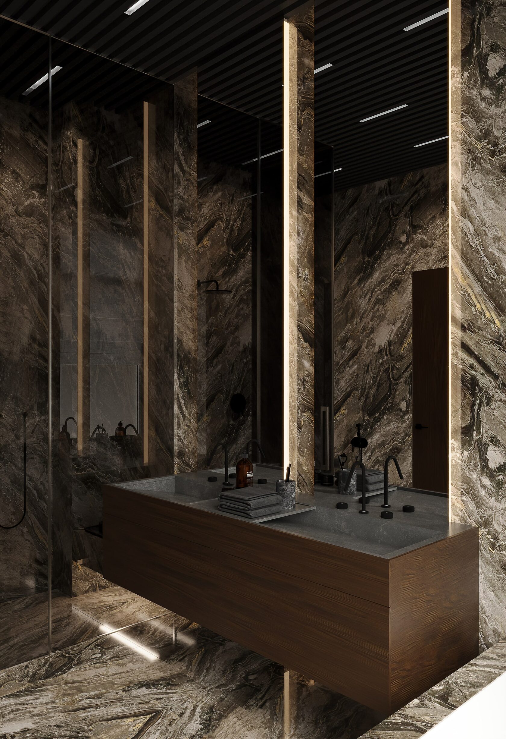 При создании концепции дизайна квартиры я была вдохновлена своей последней поездкой в Египет. Передать контраст жаркого солнца и стихии воды удалось с помощью холодного сверкающего металла в отделке и элемента огня - камина в обеденной зоне.