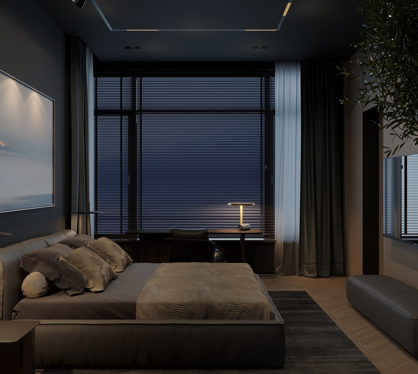 Сдержанная отделка, натуральные поблекшие цвета - отсыл к пустыне. Сочный блеск металла, отражающий медные переливы картины и ковра - отражения заката в содах Нила.