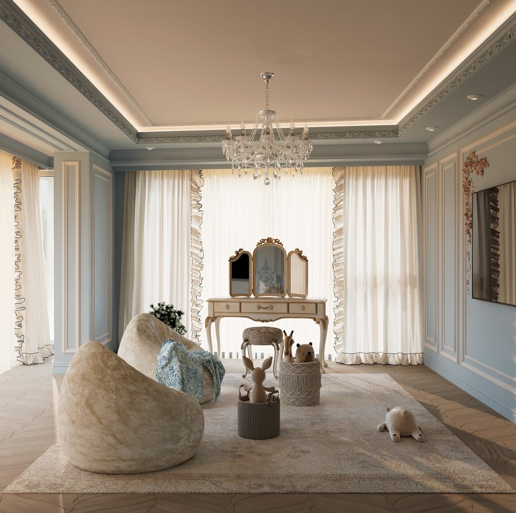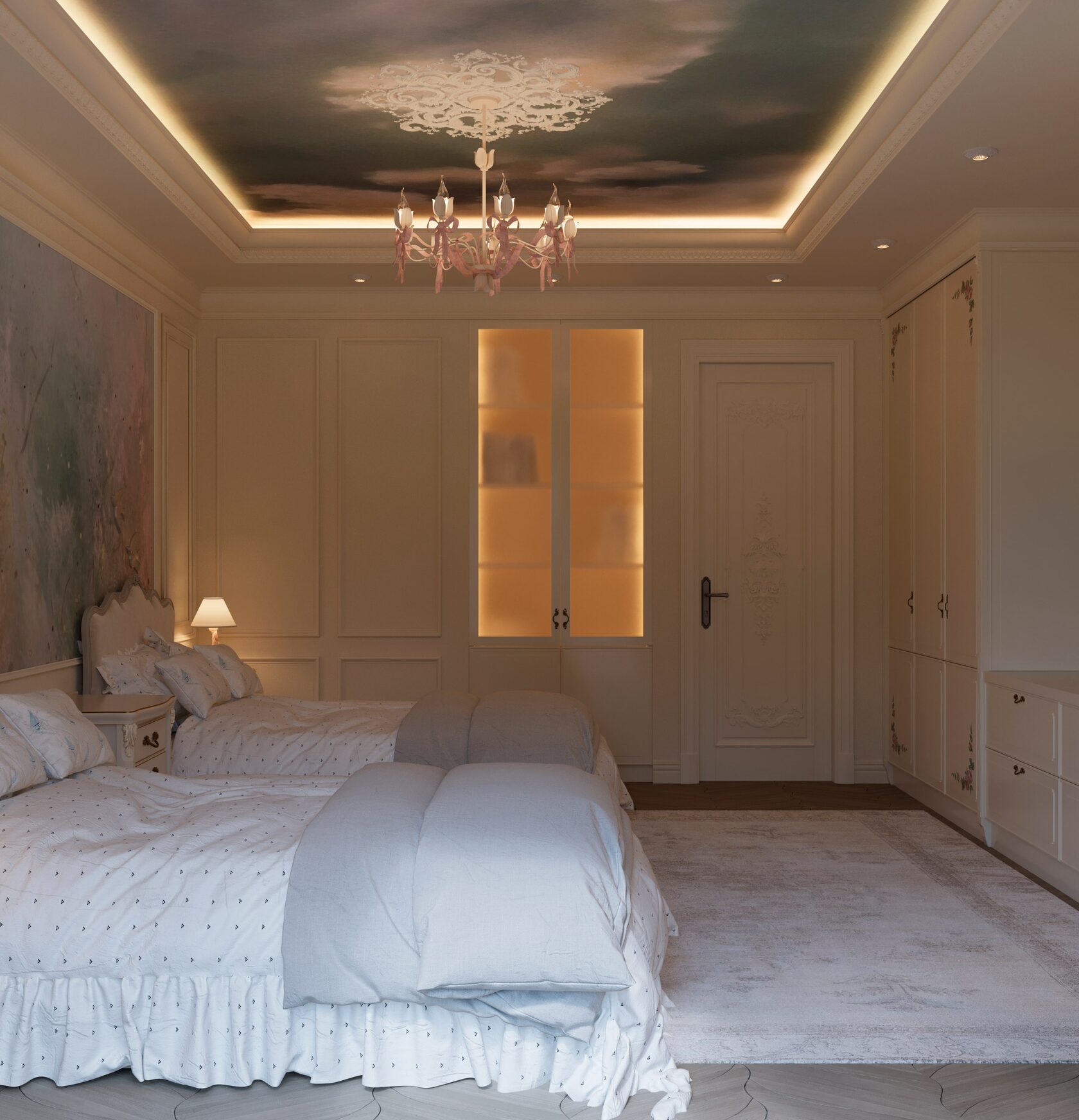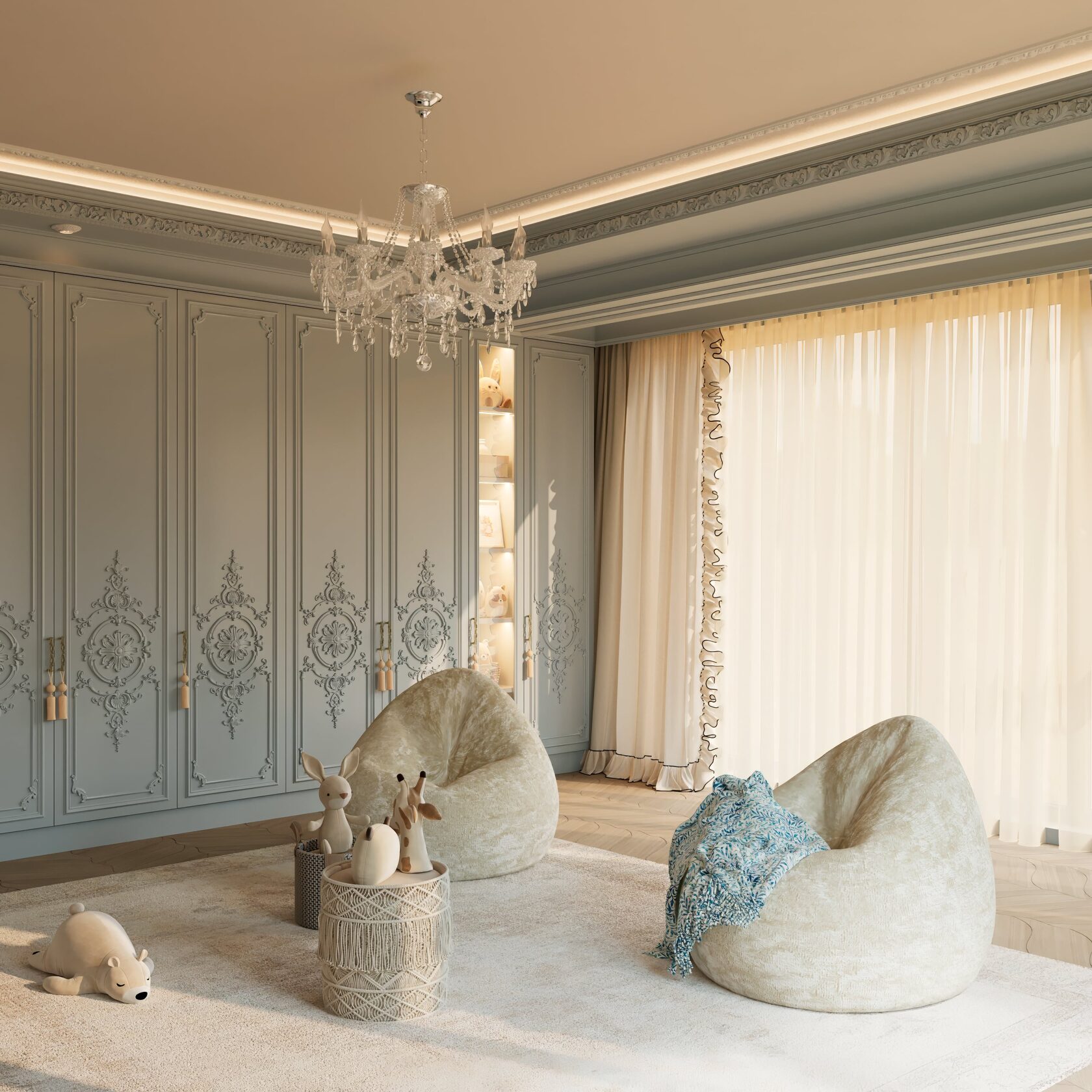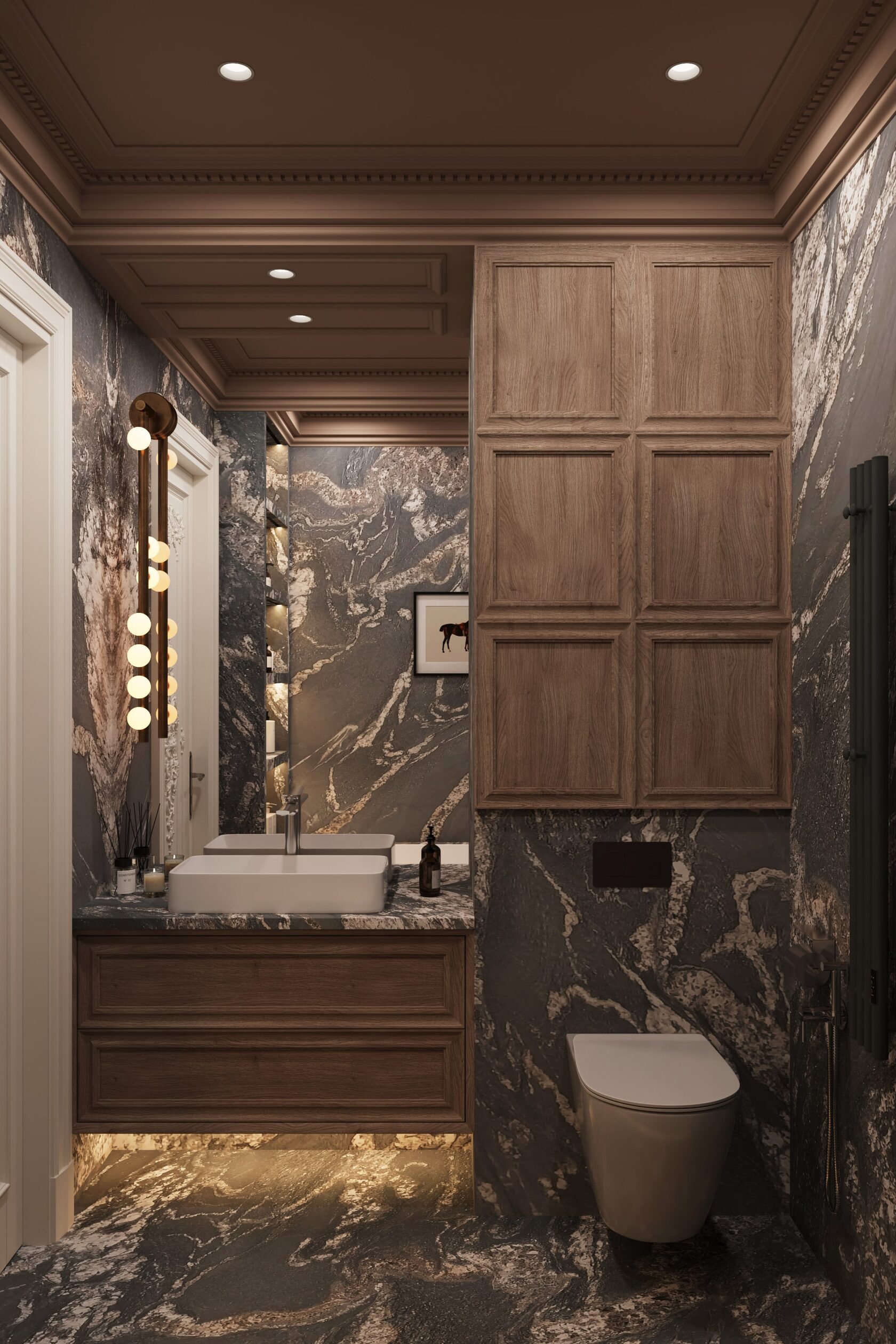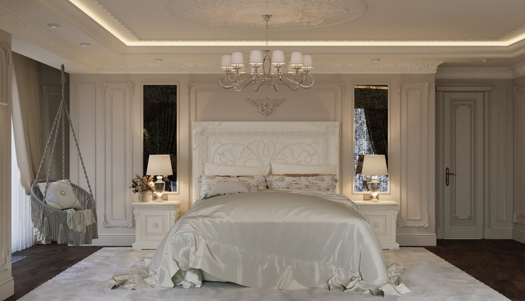 Внешний облик отображает современное прочтение исторических стилей: Классицизм- Прованс-Рококо. Эти стили характеризуют обильная лепнина на стенах и потолке, орнаменты на полах, использование натурального камня в отделке, резных элементов на фасадах мебели.
